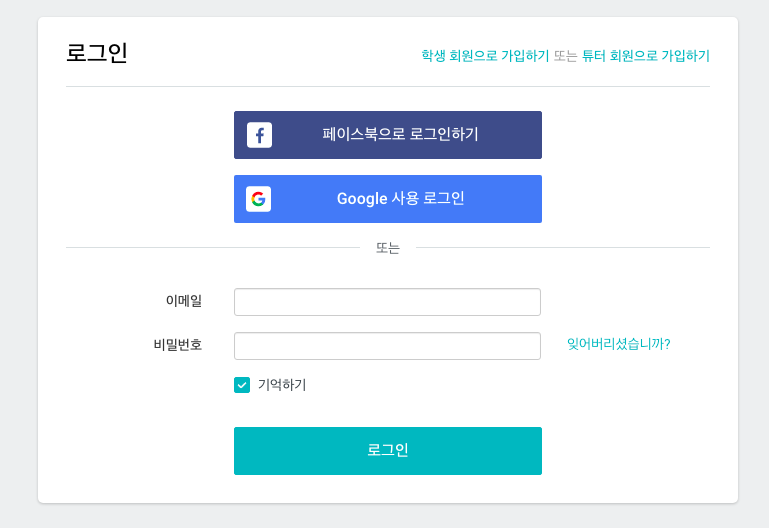 프레플리(Preply) 로그인 화면에 들어 가면, 오른쪽 상단에 '학생 회원으로 가입하기'와 '튜터 회원으로 가입하기'의 2가지 버튼이 보이게 됩니다. 외국인들에게 한국어를 가르쳐 주고 싶다면, '튜터 회원으로 가입하기' 버튼을 클릭합니다.