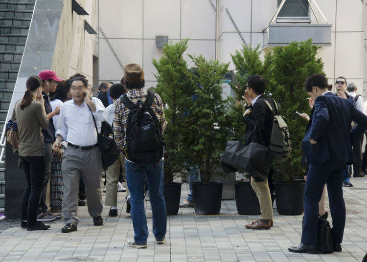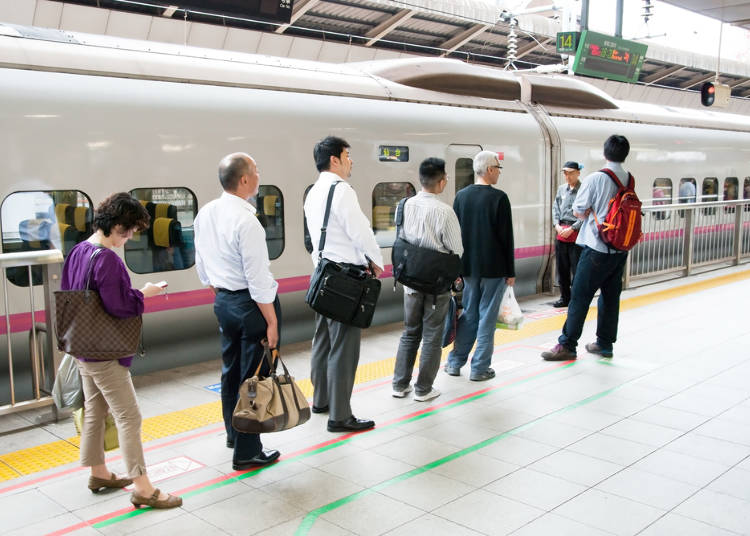 역에서 전철을 기다리고 있을 때, 인기있는 가게에 줄을 설때, 영화관 입장할 때 등 일본사람들은 어쨌든 줄을 선다. 역의 홈에서도 발밑에 줄서는 위치가 그려져있을 정도이다. 줄이나 순번을 지키는 것은 시간을 할애해서 먼저 온 사람들을 존중하기 때문이다. 아주 잘 관찰해보면 줄을 서고 있는 사람들이 몸, 자기의 물건이 앞사람에게 닿지 않도록 간격을 적당히 띄고 있는 것을 알 수가 있다. 혹시 몸이 닿았을 때에는 꼭 일본사람들이 잘 쓰는 멘트 ‘스미마셍’이 튀어나오기 일수다. 스트레스를 받기 쉬운 만원전철을 탈때 줄을 안지키고 먼저 들어가기라도 하면 주변의 따가운 시선 또는한 소리를 들을 수도 있으니 유의하자.